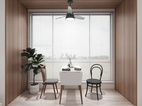 主卧做了套房设计,集卧室、衣帽间、书房、休闲区于一体,透露出空间主人享受生活的人生态度。阅读区与睡眠区之间,用黑边透明玻璃隔开既保持每个区域独立性又不会破坏通透感。将阳台做成地板围合的一个小型休闲空间,还原屋主一个自在又不失理性的舒适空间,闲暇时,你看看书,我弹弹尤克里里,阳光正好,微风不燥,一切都是最美的样子。