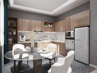 L型的厨房设计,十分简洁,内嵌的式的烤箱,木色的橱柜白色的台面干净、整洁。开放式的厨房一方面延伸了餐厨的功能,另一方面也是为了充分利用空间加强家庭成员间的互动。