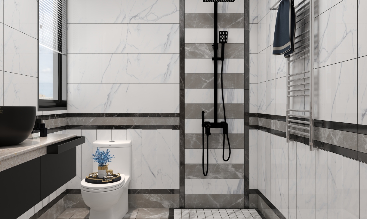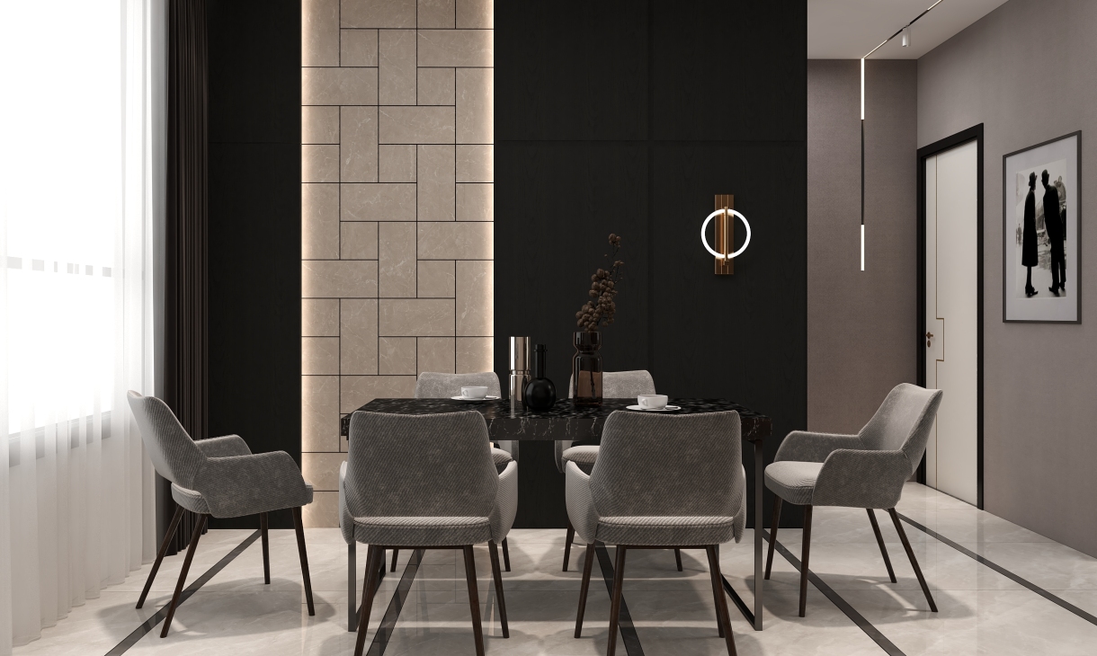 黑白两种颜色有节奏的相互拼凑在一起,给空间注入了强烈的现代艺术感,就像跳跃的钢琴键,让空间呈现出一种强烈的视觉冲击感。