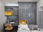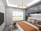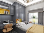 本案设计以简欧为主调,以满足业主需求以及符合人体工程学的基础上,对产品进行设计。设计上多以收纳为主,能让物品都完美的收纳于柜内,给予家居的舒适和美观。方案色彩主要以本企业高级灰为主基调,以亮眼的黄色 墨绿进行色彩点缀,打破空间的沉闷,让整个空间更显格调和内涵,符合简欧的风格特点,营造温馨的家庭氛围。