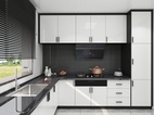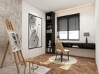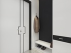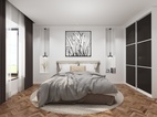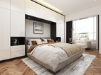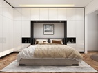 卧室空间的储物柜以最简单的黑白色用最朴素的样式构成,采用免拉手的自动门板,显得柜体更加纯粹,使空间更整体、简洁与连贯,洁白的墙配以暖色的木地板,温暖的阳光投射进来,卧室的温馨感悠然而生
