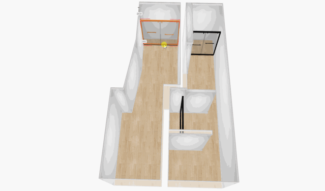 功能说明:淋浴房根据墙体的内空自动适配宽度(含柱子/半墙/斜墙)
