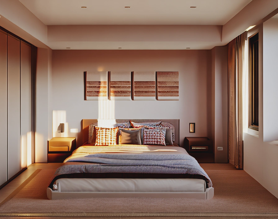 客厅装饰画的照明应该根据画作的材质和颜色进行选择,如果画作比较亮色,可以选择暗调的灯光,反之则可以选择明亮的灯光。
