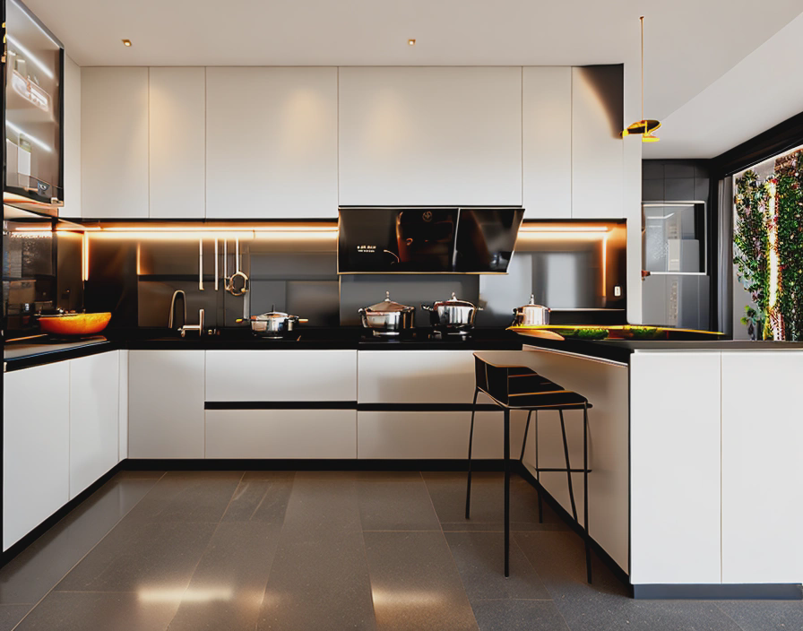 U型厨房的灯光应该根据不同区域的需要进行分区域设计。如在操作区域应该设置光线明亮、柔和的灯光,而在餐饮区域可以设置柔和、温馨的灯光。此外,还可以考虑使用LED灯,达到节能、环保的效果。