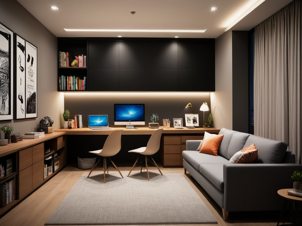 墙面颜色的选择应与整体装修风格协调,通常推荐使用浅色系如米白、淡蓝、浅灰等,这些颜色能使空间显得更开阔;而深色系如深蓝、深绿则能增加空间的温馨感,但要注意搭配适量的灯光,避免造成压抑。也可以通过墙纸或墙面艺术画来增加个性与层次感。