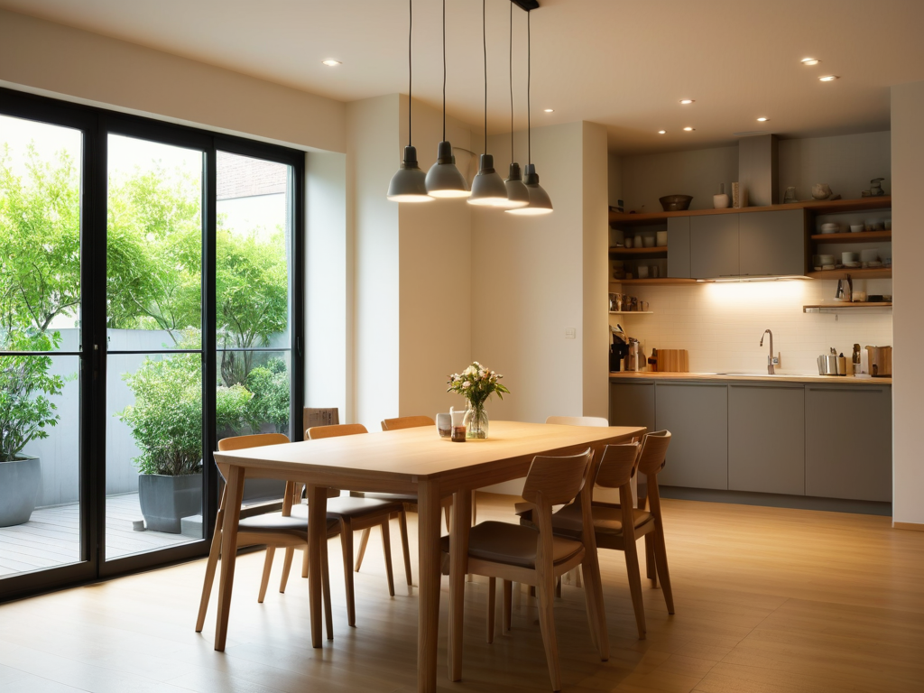 1. 空间布局尽量保持简单大方,不要过分繁琐;2. 客厅以大范围的自然灰、深棕色为主,注重柔和的光线和和谐的色彩搭配;3. 卧室以舒适为主,选用简单大方的家具和纯色系的床品,增加居室的温馨感;4. 餐厅以大范围的自然灰、棕色为主,搭配简约的家具和铁艺吊灯;5. 厨房则可以选择简单大方的木质橱柜和不规则的砖墙,增加居室的自然感。