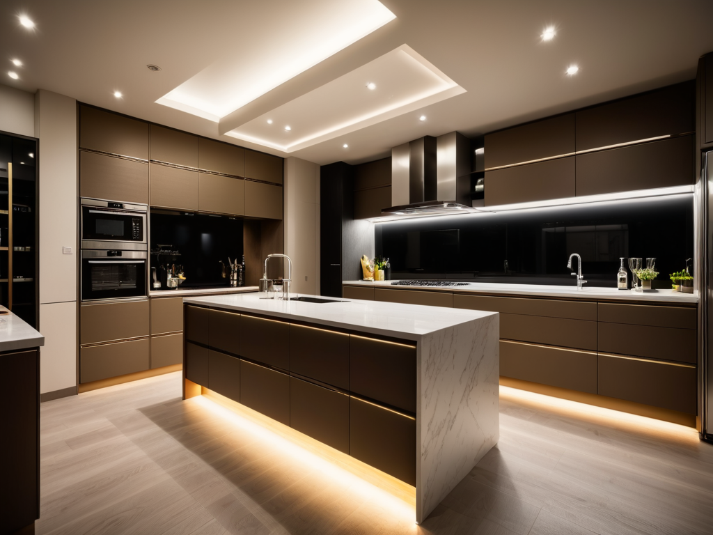 厨房装修时需要考虑空间布局、通风、排水、电器位置及储物空间等。首先,合理的布局能提高使用效率,常见的三角形操作台(冰箱、灶具和水槽)布局应优先考虑。其次,厨房的通风要良好,避免油烟积聚,最好安装排风扇。此外,排水管道应畅通无阻,避免积水问题。电器放置应方便使用,同时要注意安全,确保电源插座的合理布局。最后,要设计足够的储物空间,确保厨房整洁有序。