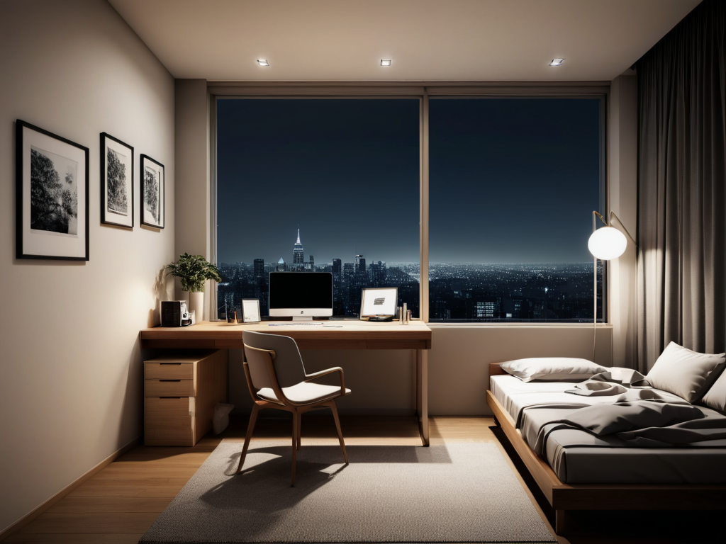 4. **光线利用**:大开间的光线设计同样重要。尽量选择大窗户,增加自然光的引入。同时,合理布置灯具,使用不同类型的照明(如主灯、辅助灯和氛围灯),可以营造出不同的空间氛围。