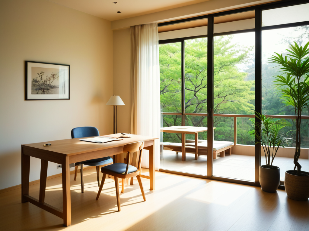 4. **家具搭配**:阳台的家具选择应与整体风格相协调。可以选择一些轻便的户外家具,如折叠椅、阳伞等,既方便使用,又不占用过多空间。