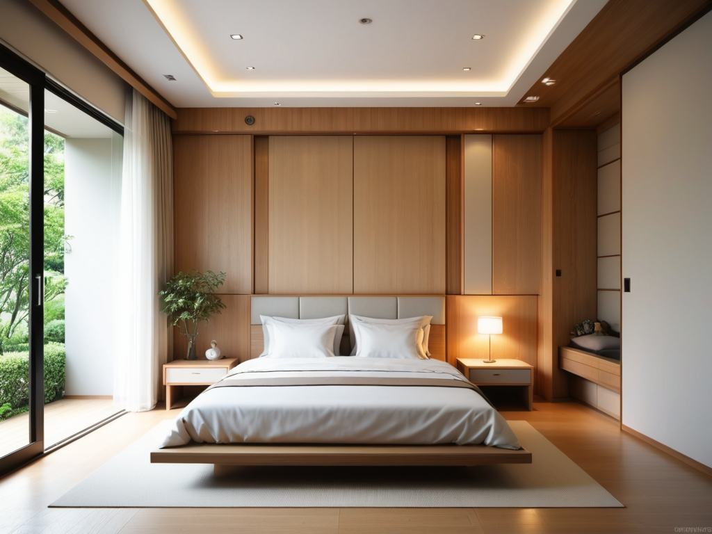 窗帘的选择应以轻盈、透光的材质为主,例如棉麻或亚麻,颜色可以选择自然色调,如淡蓝、米色或白色,能够让光线柔和地洒入室内。同时,窗帘的设计可以选择简约的多层次效果,增加空间的层次感与通透感。