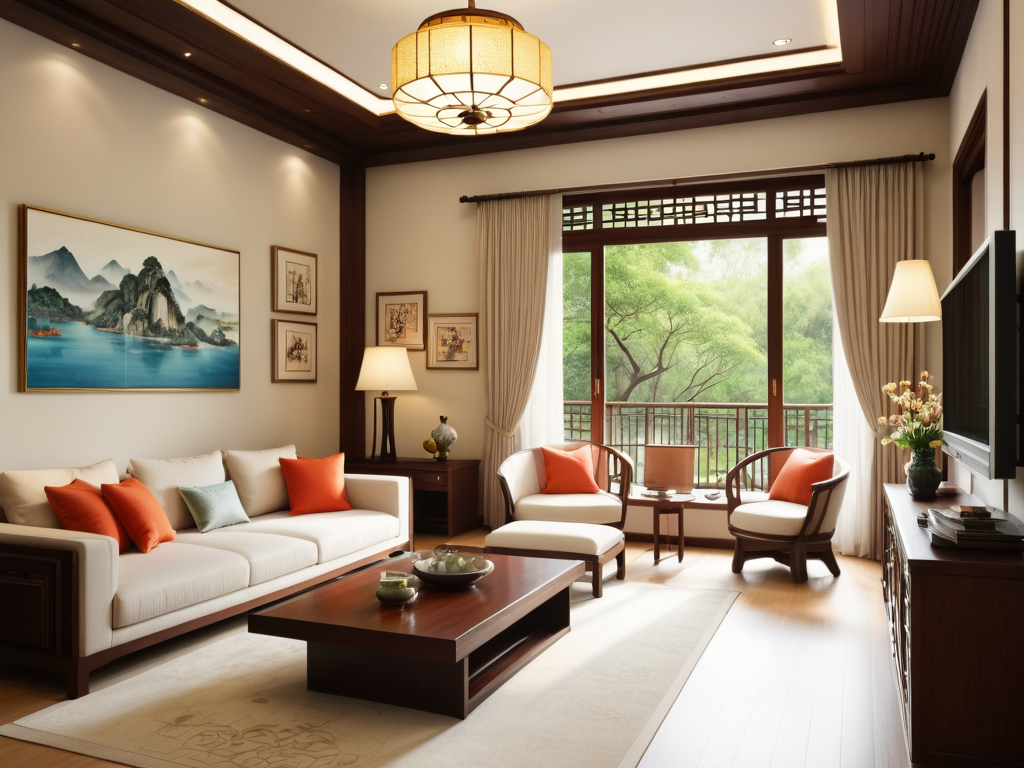 4. **艺术吸顶灯**:以独特的造型和设计为特点,成为客厅的装饰亮点。