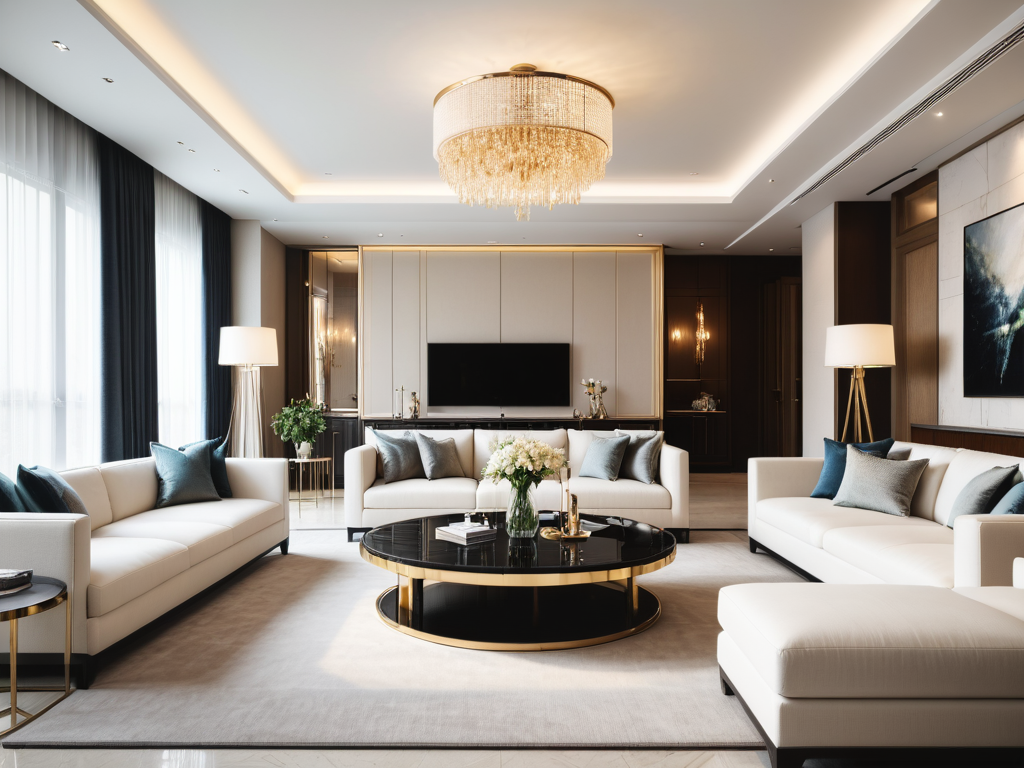 3. 装饰品摆放:挑高的客厅可以选择一些大型的装饰品进行摆放,如大型画作、雕塑等,以填补空间,增加房间的艺术感。