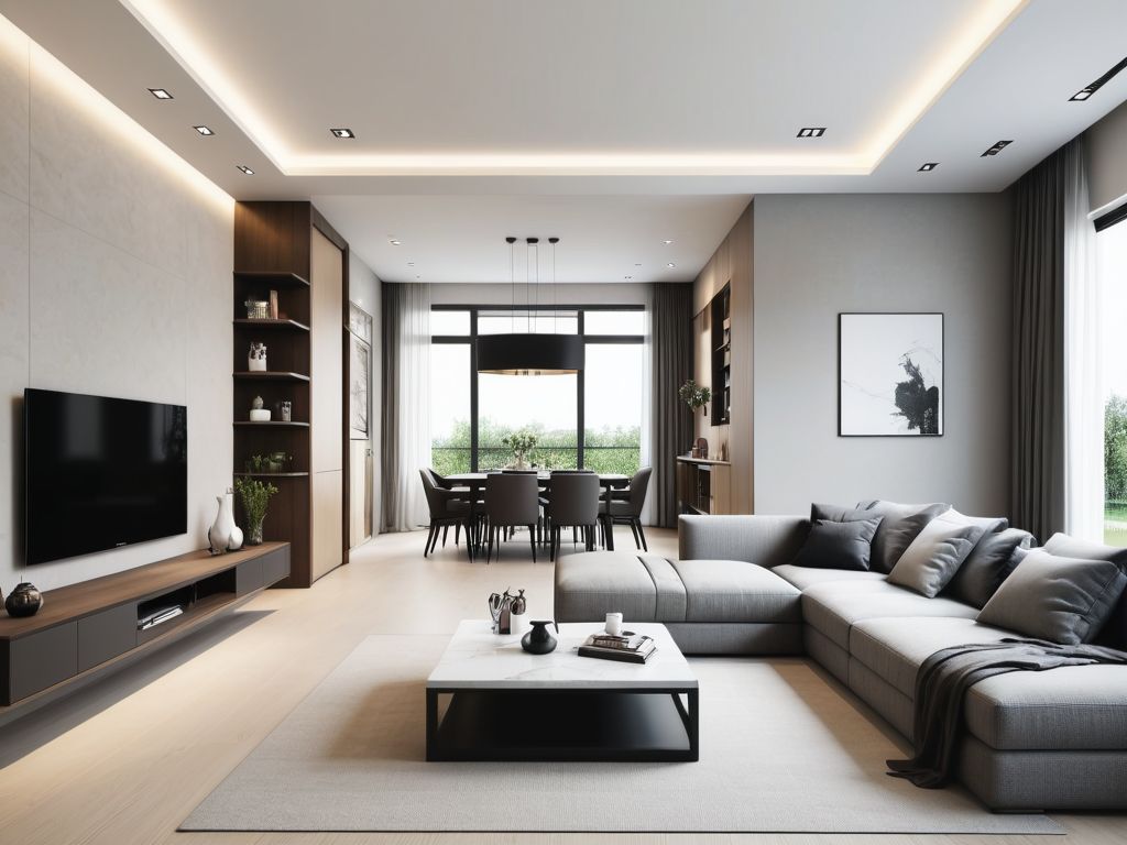 现代风格是指以简洁、明快、舒适为特点的装修风格。现代风格注重线条的简洁和流畅,色彩的明亮和柔和,空间的开阔和通透。在现代风格的装修中,常常运用大面积的玻璃、金属、石材等材料,以及简洁的家具和装饰品,营造出简约而不失时尚的居住环境。
