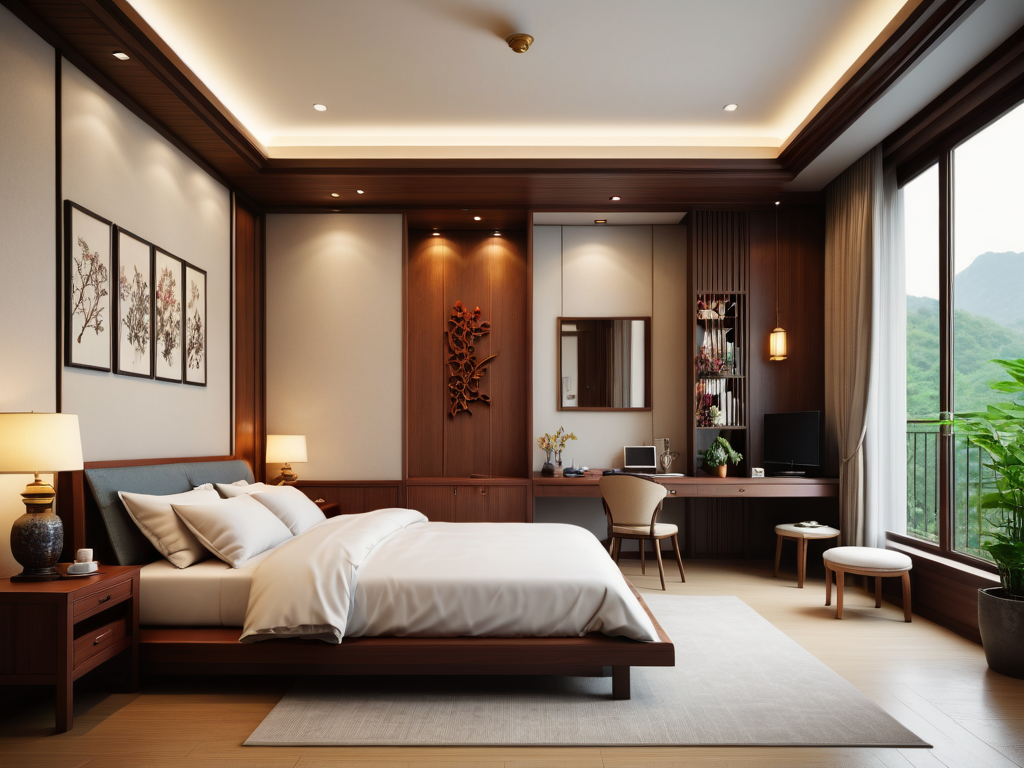其次,在设计中式风格吊顶时,需要考虑几个关键要素。首先是空间的高度和面积。中式吊顶通常适合较高的空间,能够营造出一种开阔的感觉。其次是色彩的选择,中式风格常用的颜色有红、黄、棕等暖色调,能够传达出温馨和谐的氛围。此外,吊顶的形状和装饰也至关重要,常见的有方形、圆形和多层次的设计,装饰可以选择传统的花纹、龙凤图案等,增强文化感。