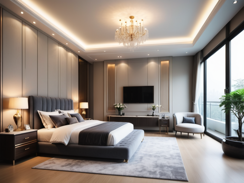 其次,色彩和灯光的运用也是设计中不可忽视的部分。为了让空间看起来更加开阔,建议使用浅色调的墙面和家具,这样可以在视觉上增加空间感。同时,合理的灯光设计也能提升空间的舒适度。可以选择一些可调光的灯具,既能满足客厅的明亮需求,又能在晚上营造出温馨的卧室氛围。