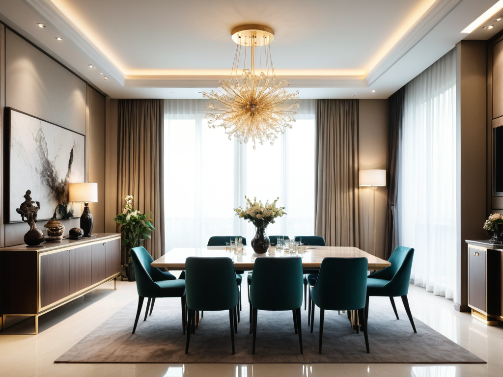 吊顶造型会直接影响室内的光线分布和氛围。平顶通常能够均匀地散射光线,适合需要明亮照明的房间。弧形顶和多层顶则通过不同的高度和角度,可以引导光线的方向,使得光线更加柔和,营造出温馨的气氛。同时,吊顶还可以与灯具结合,选择合适的照明设计,可以有效地提升室内的整体美感。