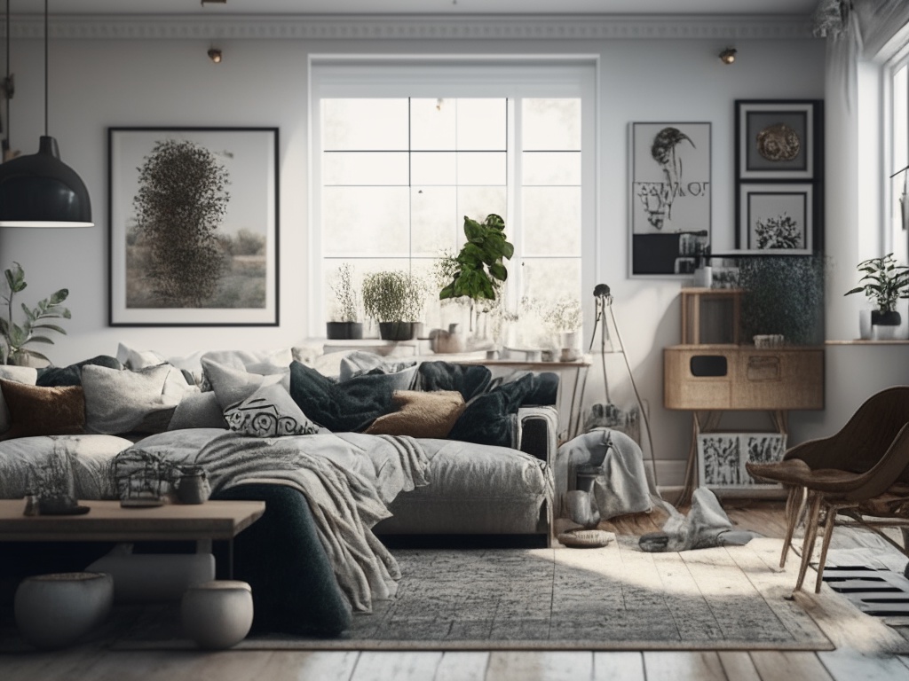 在北欧风格中,白灰色地板可以搭配简洁、轻盈的家具,如木质家具和简约的布艺沙发,营造出清新、自然的氛围。