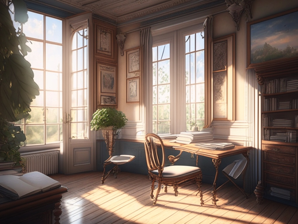 美式书房通常采用大面积的书柜和书桌,搭配古典的挂画和地毯,营造出安静舒适的阅读环境。图片中的书房采用了暖色调的墙面,搭配大面积的书柜和书桌,给人一种宁静雅致的感觉。
