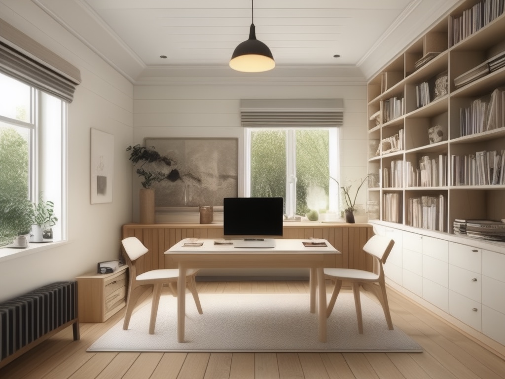 书房是一个安静学习和工作的空间,装修时要注重实用性和舒适性。可以选择适合的书桌和书柜,以及舒适的座椅和良好的照明设备。可以根据个人需求设置书房的功能区域,如阅读区、电脑办公区等,同时要注意通风和保持整洁的设计。