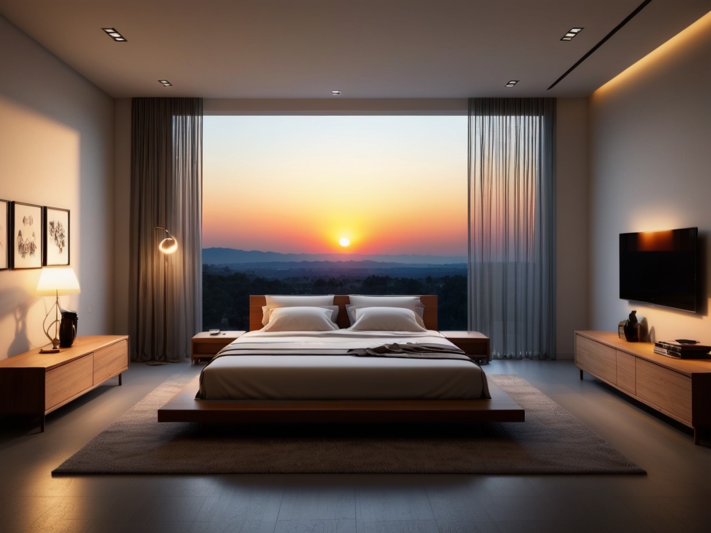 最后,卧室的装饰品也是营造氛围的重要元素。可以选择一些简约而精致的装饰品,如挂画、花瓶、摆件等,来增加卧室的美感。此外,可以选择一些绿植来增加房间的生机和清新感。