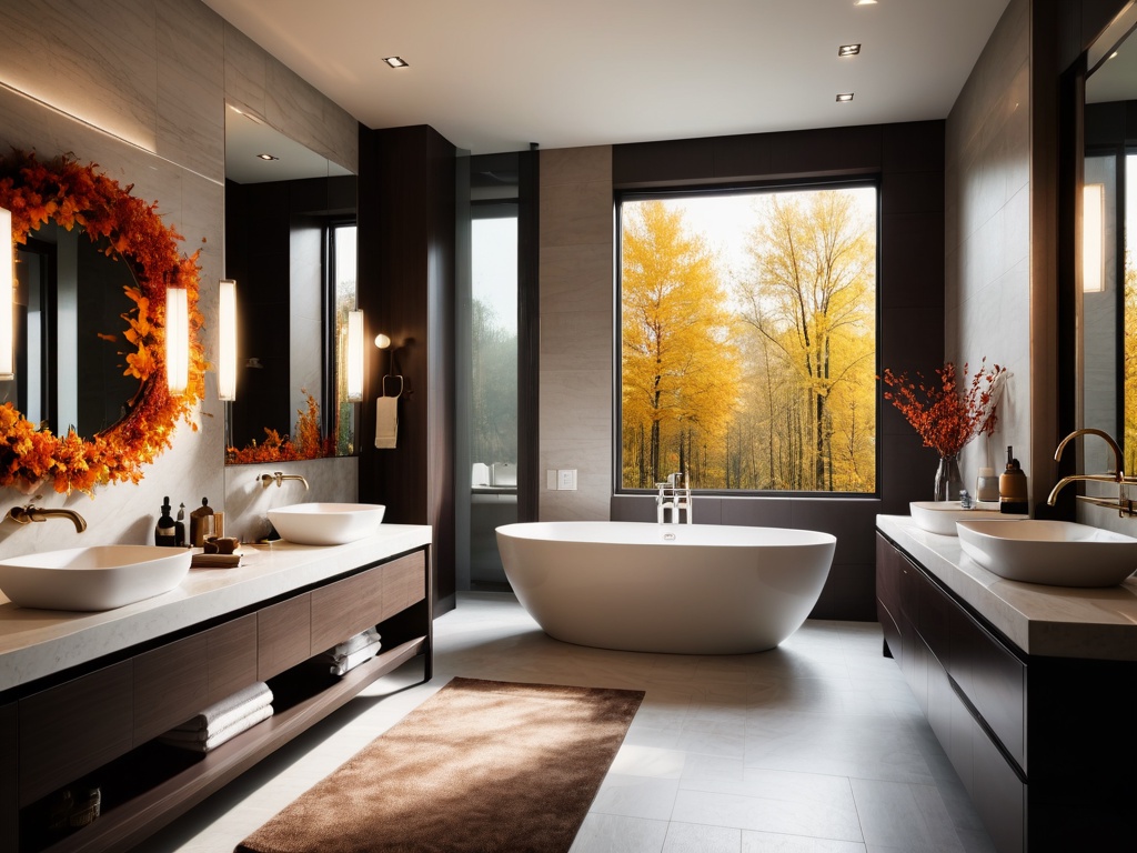 体现自然元素是北美风格别墅装修的重要特点之一。可以在室内布置中加入一些自然材质,如实木家具、石材地面等;使用大面积的玻璃窗户,让室内与室外的景色相连,增加自然的视野;在软装配饰上可以使用一些自然的元素,如植物、花卉等,增添生机和自然气息。