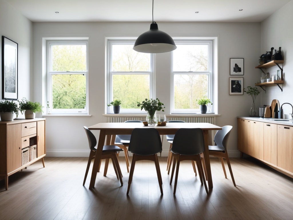北美简约风格注重充分利用自然光线,希望空间明亮、通透。因此,在装修中要充分考虑窗户的布局和大小,选择适合的窗帘或百叶窗,避免过多的遮挡。同时,可以选择明亮的灯具,如吊灯、壁灯等,增强室内的整体照明效果。