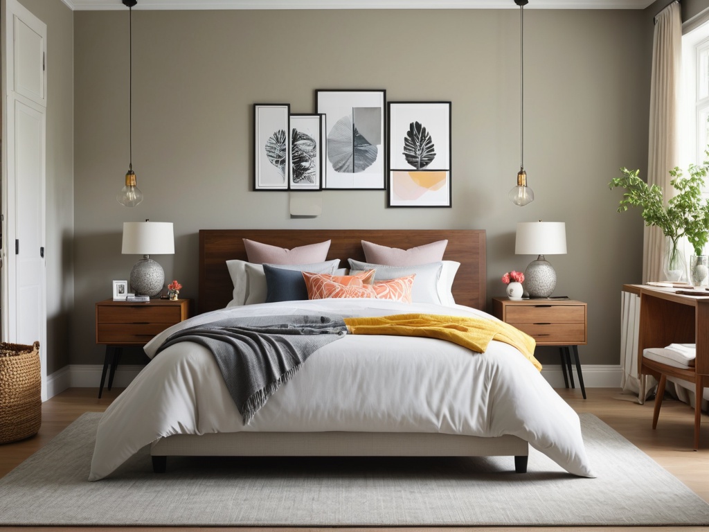 其次,出租房间设计图卧室图片需要考虑的是色彩搭配。色彩对于卧室的氛围和舒适度有着重要影响。一般来说,选择柔和、温暖的色调可以营造出舒适宜人的氛围。可以选择浅色系的墙面和床品,搭配一些明亮的装饰品,如窗帘、地毯等,以增加卧室的亮度和活力。