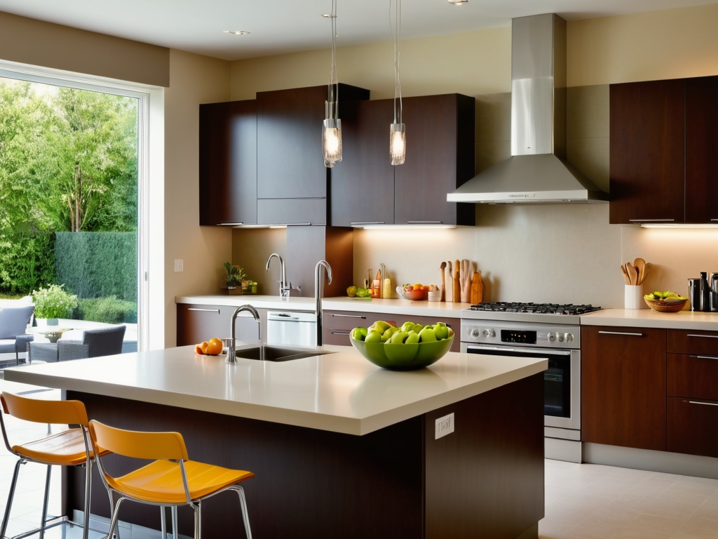 3. 材料选择:选择适合厨房环境的耐久材料,如石英石、大理石、不锈钢等,同时考虑材料的美观和易清洁性。