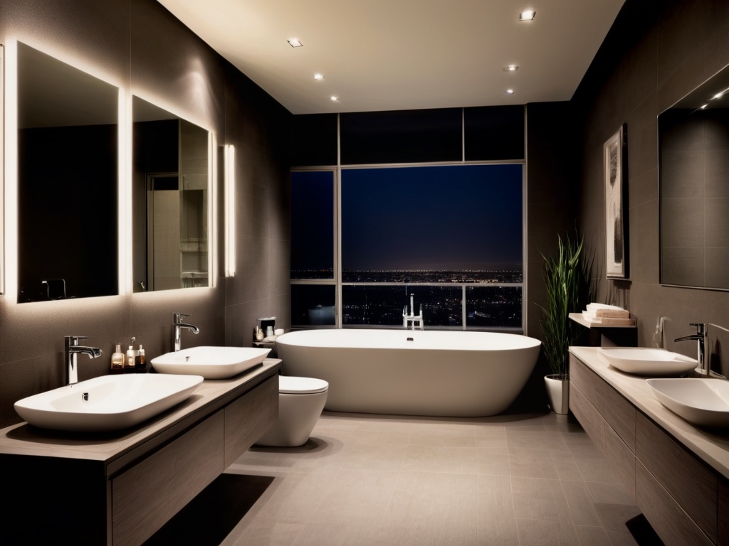 1. 现代风格浴室:现代风格浴室通常采用简洁的线条和中性色彩,注重功能性和舒适度。常见的设计元素包括淋浴房、浴缸和独立式洗手台。