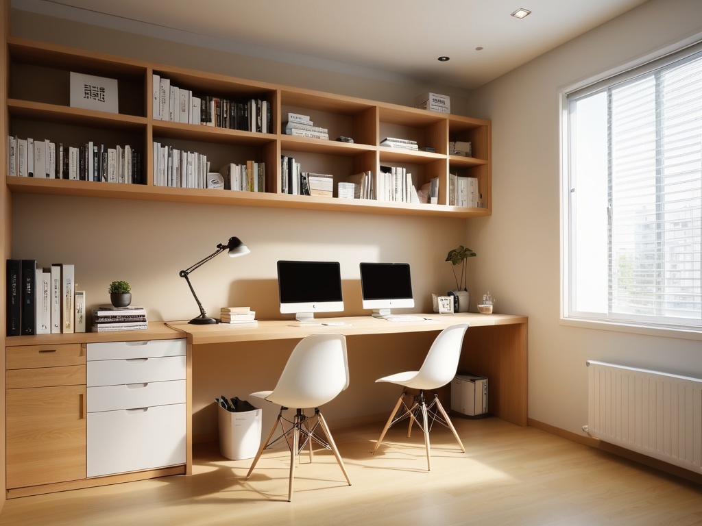 1. 空间规划:首先,我们需要根据书房的大小和形状,合理规划空间布局。书桌、书柜、沙发等家具的摆放位置应该符合人体工学原理,方便使用并提高工作效率。