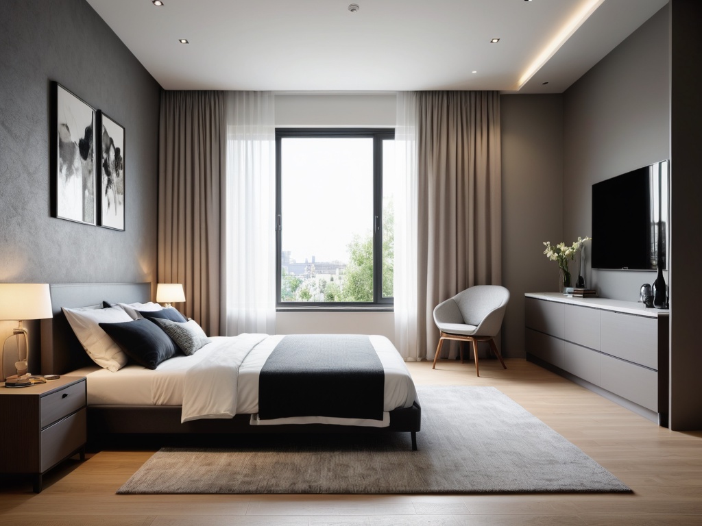 在高低床房间装修中,可以选择简洁线条的家具,搭配简约的床品和窗帘,避免过多装饰,营造简约风格。
