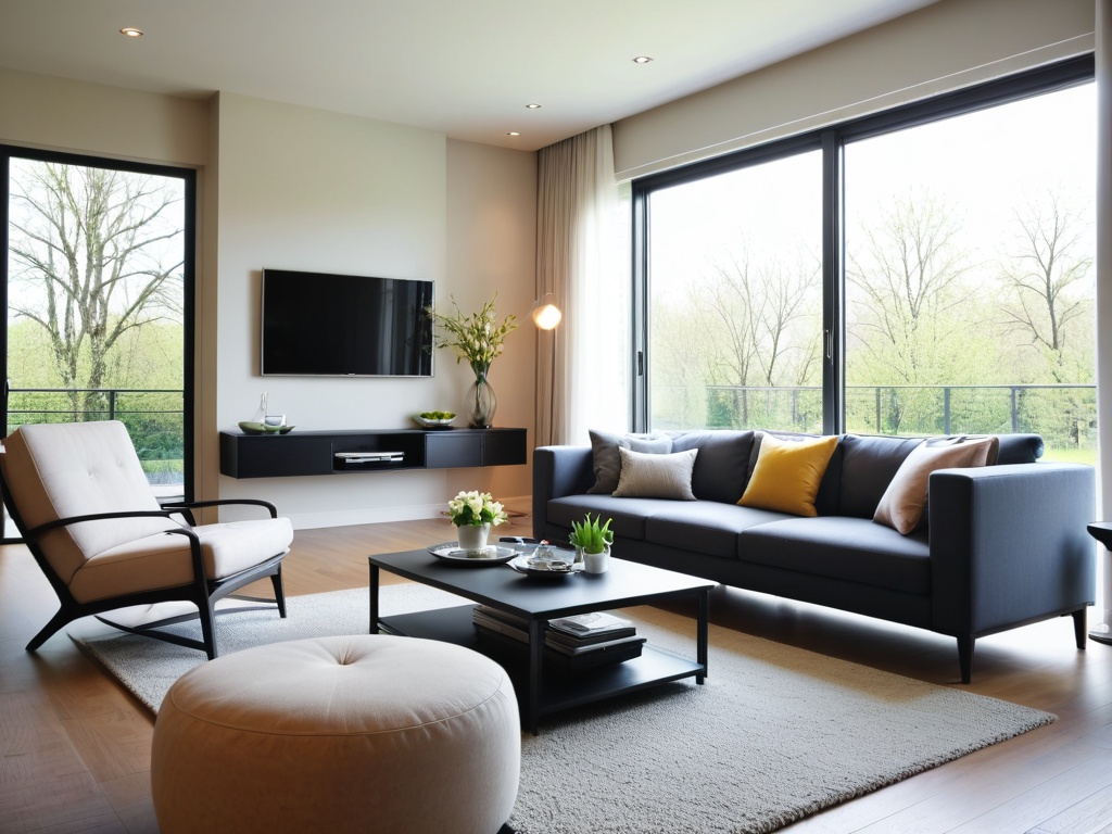 在布置摆放家具时,可以根据空间大小和功能需求,选择合适的家具摆放位置,保持整体布局简洁、通透。