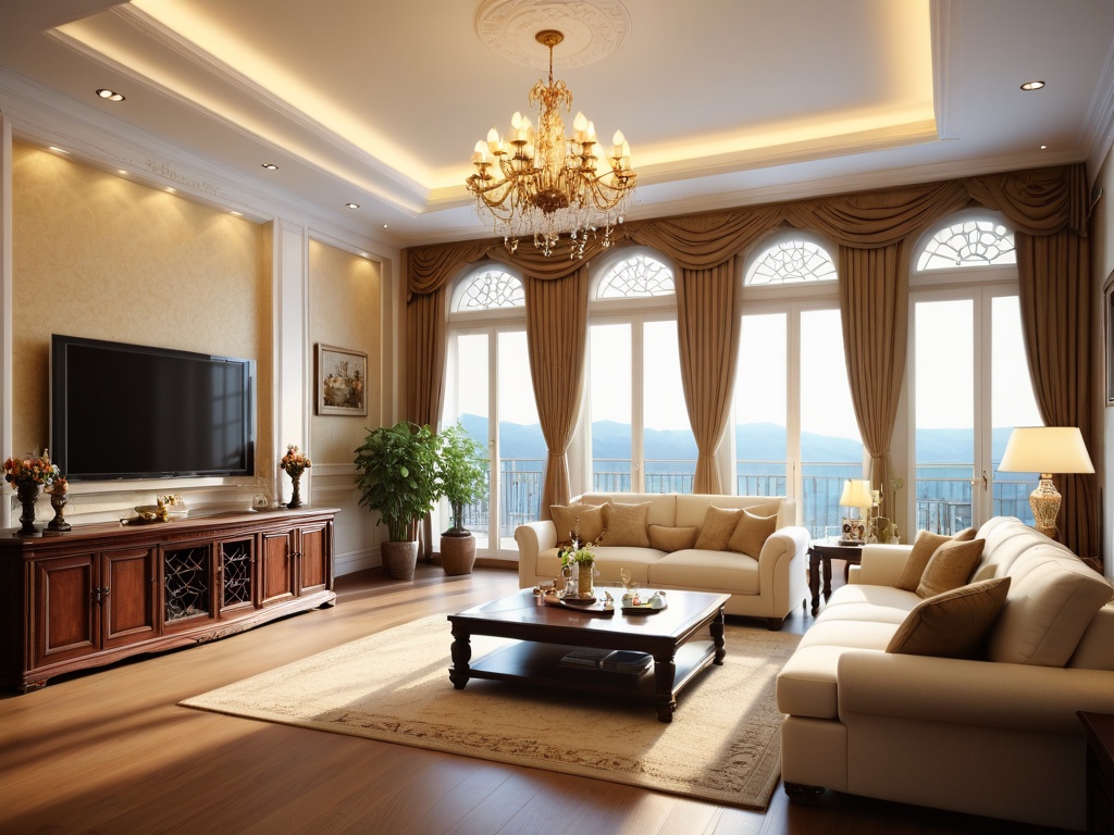 古典欧式装修风格的照明设计注重营造柔和、温暖的光线氛围。可以选择华丽的吊灯或枝形吊灯作为主要照明,配合壁灯和台灯增加局部光源。灯具的外观通常采用铜、水晶等材质,呈现出华丽的效果。