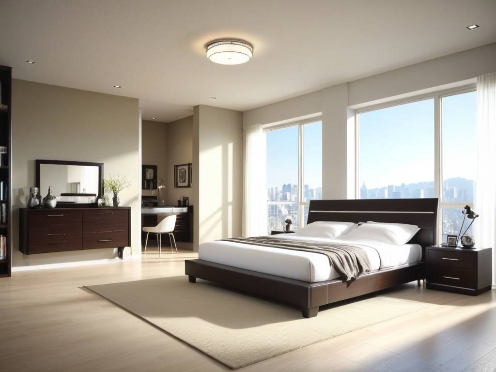 中式风格的卧室以木质家具为主,搭配红木地板和红木装饰,营造出一种温馨、舒适的氛围。床头可以选择传统的红木雕刻,增加艺术感。床上用品可以选择丝绸或者棉麻的材质,增加质感。在窗帘和窗饰上,可以选择传统的绣花或者刺绣,增加整体的华丽感。