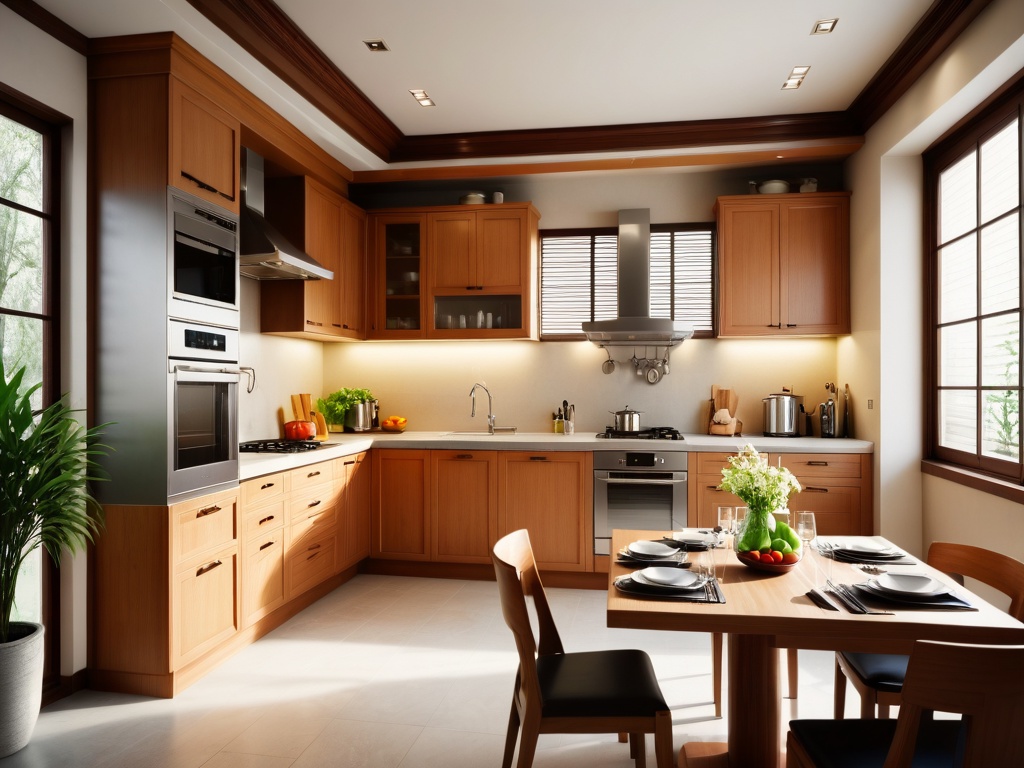 选择豪华厨房的照明设计需要考虑光线明亮、均匀、无阴影。可以采用多种照明方式,如整体照明、局部照明和装饰照明相结合。整体照明可以选择吊灯、筒灯等,照亮整个厨房空间;局部照明可以选择下方柜灯、吸顶灯等,照亮烹饪台面等特定区域;装饰照明可以选择壁灯、吊灯等,提升豪华感。此外,还可以考虑使用LED灯具,它们能够提供明亮的光线,并且具有节能、环保的特点。在选择照明设计时,还要注意与整体装修风格的协调性,确保照明效果与豪华厨房装修风格相匹配。