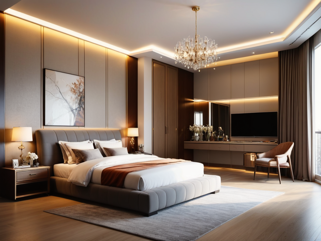 新中式家装效果图中会充分利用自然光,突出室内的明暗层次和色彩,以营造出温馨舒适的氛围。同时,还可以运用灯光照明,打造出独特的氛围效果。