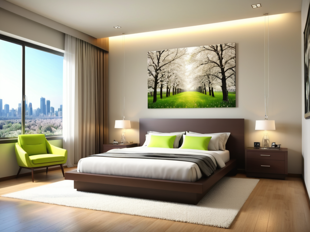 除了家具,简单大气卧室装修风格还注重细节的处理。例如,可以选择简约的窗帘和窗饰,以增加空间的通透感和轻盈感。同时,可以选择一些简约的装饰品,如简约的挂画、花瓶等,以增加空间的艺术感和个性化。