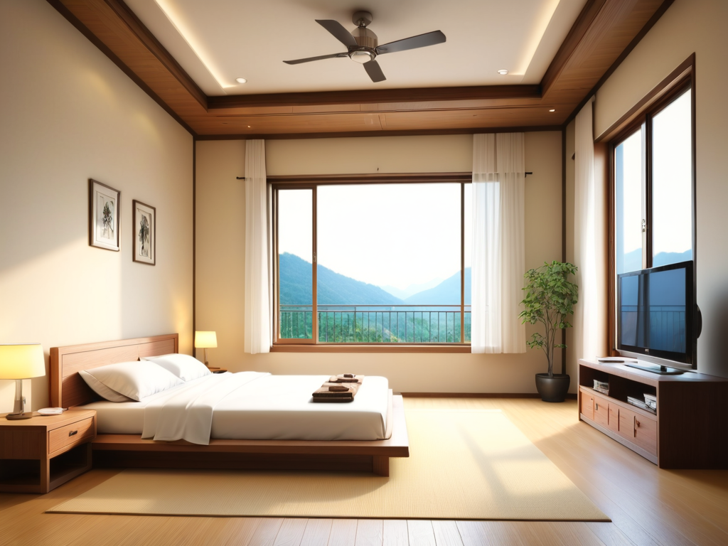 在简易卧室装修效果图中,可以通过以下几种方式增加空间感: