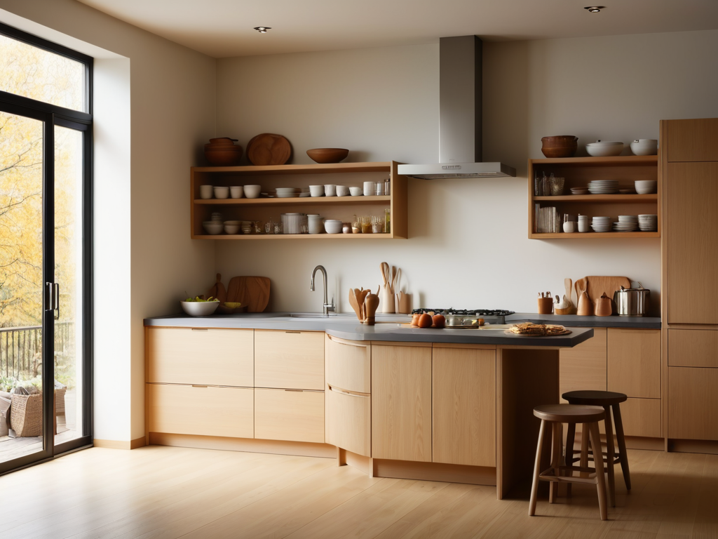 在简约风厨房中,电器和厨具的摆放应遵循简洁、整齐的原则,可以选择隐藏式的电器和收纳柜,保持台面的整洁和开放感。