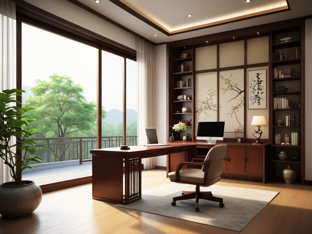 简中式卧室的装饰元素多采用中国传统的图案和纹饰,如花鸟、山水、云龙等。可以在墙面、窗帘、床品等方面运用这些元素,增加房间的艺术感。