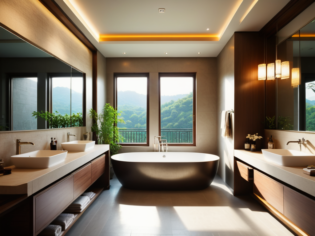 2. 光线利用:开放式卫生间要注重光线的利用,可以通过大面积的窗户或者天窗来增加自然光的进入。同时,可以选择明亮的灯具来增加室内的亮度。