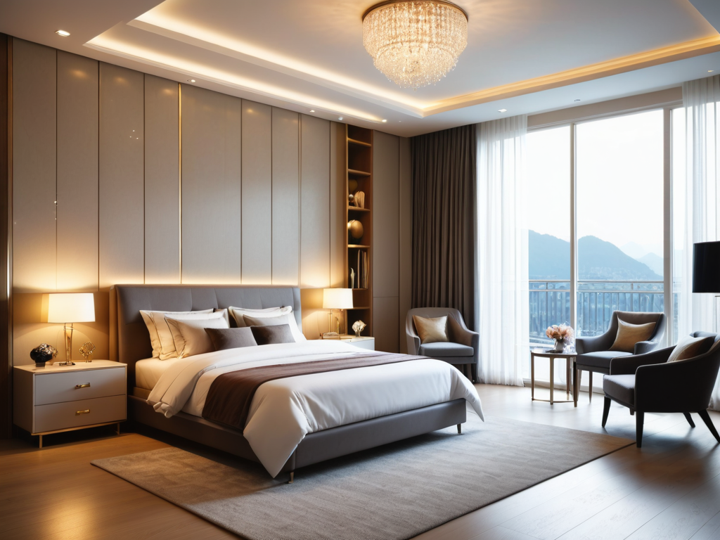 5. **灯具选择**:选择一些造型独特的吊灯或壁灯,尤其是铁艺或陶瓷材质的灯具,能够为空间增添一份艺术感。
