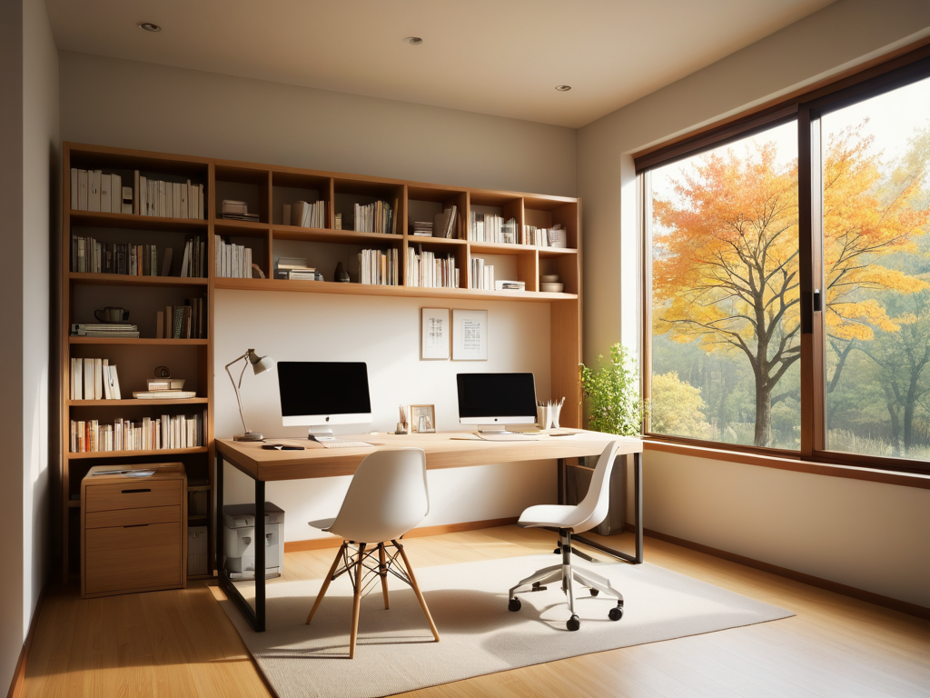 美式风格的书房应该注重创造一个安静、舒适的工作环境。选择一张宽大的书桌,搭配符合人体工程学的椅子,确保长时间工作时的舒适性。墙面可以采用书架来存放书籍和装饰品,增加层次感,并可以选择暖色调的灯光,营造温馨的阅读氛围。