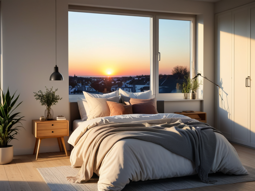 窗帘的选择应考虑到遮光性和美观性,常用的材料有棉麻或涤纶,颜色上可以选择自然色或者与墙面相配的图案。百叶窗或窗帘的搭配也很常见,既保留了隐私,又不失通透感。