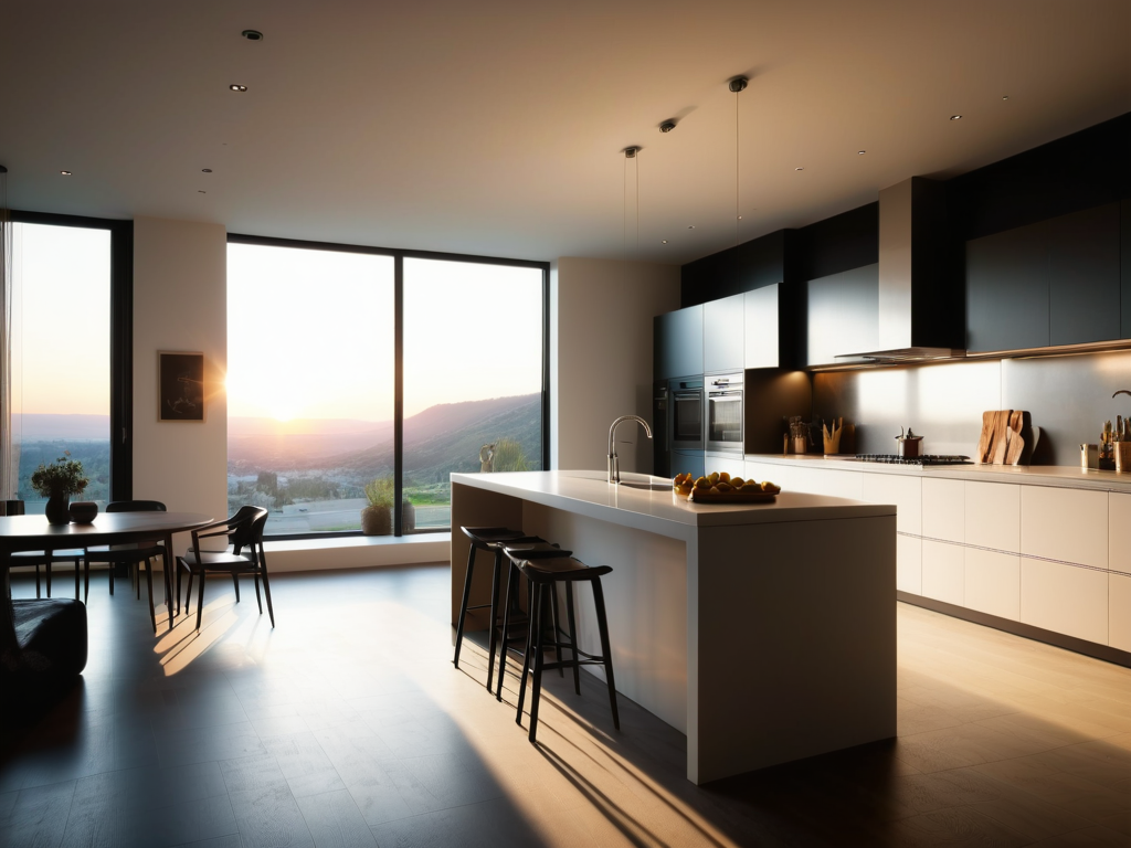 5. **空间布局**:小户型的空间布局需要合理规划。可以通过开放式设计来增加空间感,例如将厨房与客厅相连,使用吧台作为隔断,既能保持空间的通透性,又能增加互动性。