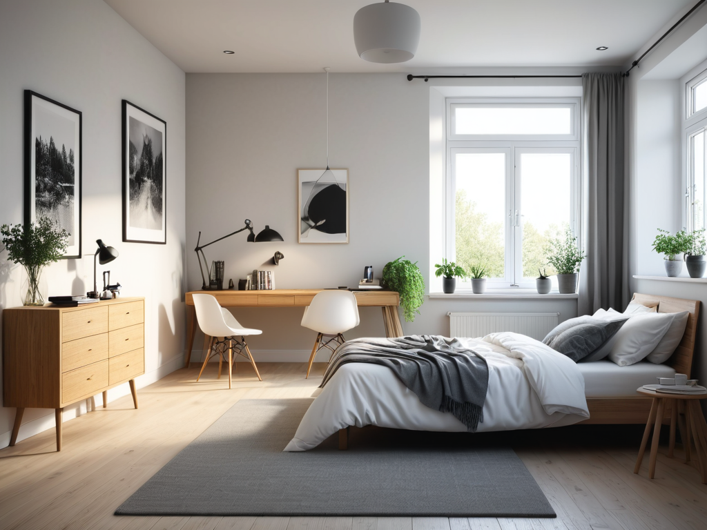 5. **色彩搭配**:在色彩上,建议使用温暖的中性色调,搭配一些亮色的装饰品,如抱枕、地毯等,增加层次感和活力。