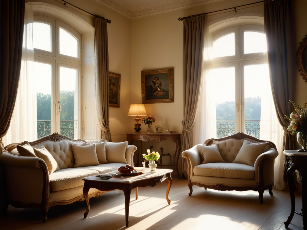 2. **色彩搭配**:美式风格通常使用温暖的中性色调,如米色、棕色和灰色等,搭配一些亮色的装饰品,形成视觉上的层次感。