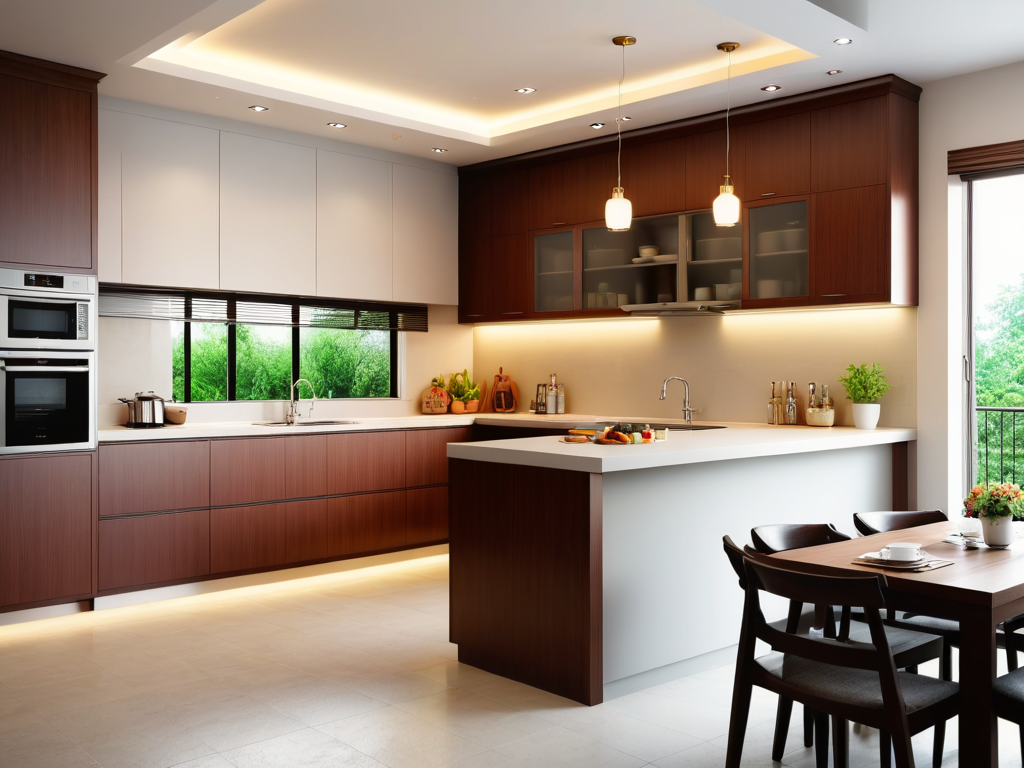 1. **开放式设计**:将厨房、餐厅和客厅打通,减少墙体的使用,既能节省材料费用,又能增加空间感。