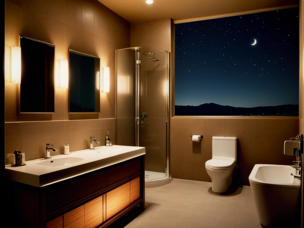 3. **照明设计**:美式卫生间的照明设计通常采用多层次的方式,既有主灯,也有辅助灯光。可以选择复古风格的吊灯或壁灯,增加空间的层次感。