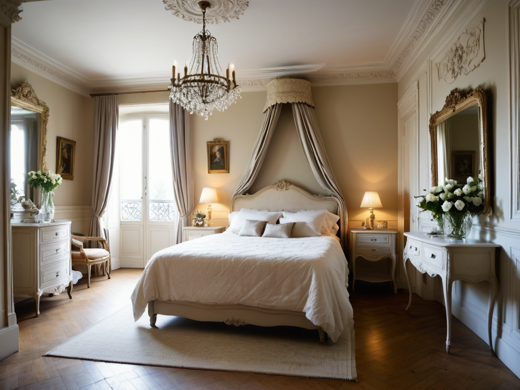 1. **色彩搭配**:美式卧室通常采用温暖的中性色调,如米色、浅棕色、淡蓝色等,营造出温馨的氛围。墙面可以选择淡色的涂料或壁纸,搭配深色的家具,形成鲜明的对比。